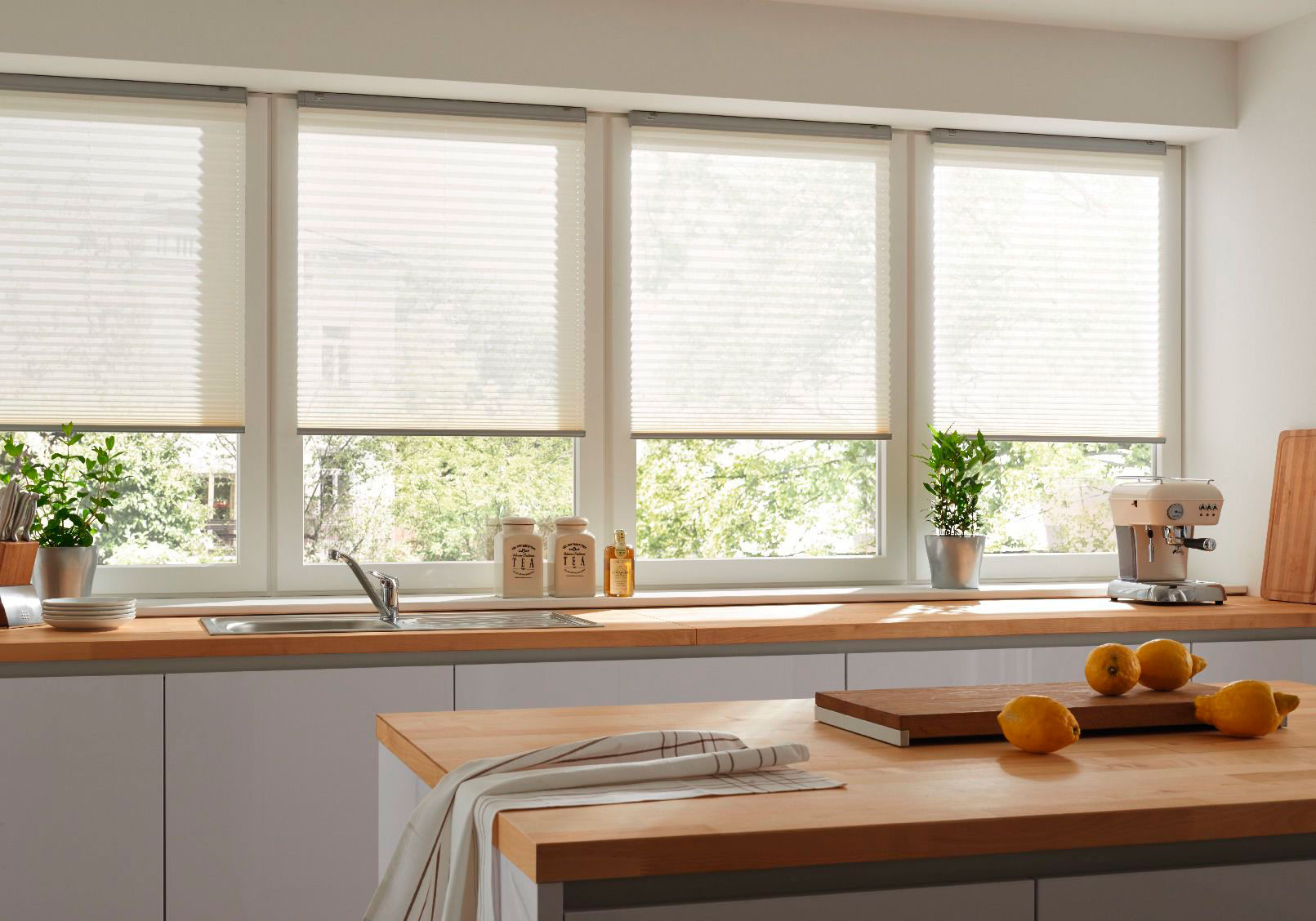 Шторы Плиссе нисколько не уступают рольшторам или другим видам жалюзи в защите от солнца, напротив, благодаря тому, что плиссированное полотно цельное, оно исключает проникновение солнца через мелкие световые проемы, как в случае с горизонтальными или вертикальными жалюзи, состоящими из ламелей, которые неплотно примыкают друг к другу, в результате чего солнечные лучи проникают в комнату.